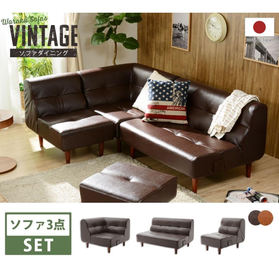 ソファ ソファー セット ダイニングソファ カフェ おしゃれ L字 ヴィンテージ リビング 3人掛け コーナーソファ 脚付 レトロ ブルックリン 日本製 ソファ 高級感 A529 3set ソファーメーカー直販店 和楽 通販 Yahoo ショッピング
